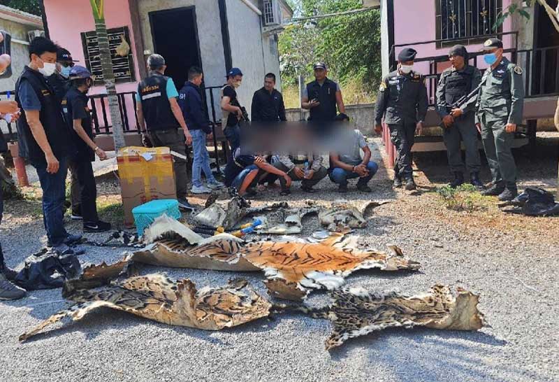 ตำรวจ ปทส.สนธิกำลังจับขบวนการค้าสัตว์ป่าและซากสัตว์ป่าคุ้มครอง พบของกลางลูกแมวดาว-หนังเสือมูลค่ากว่า 2.2 ล้านบาท