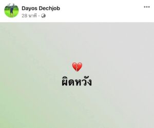 ด้านนายดายศ เดชจบ พี่ชายของแตงโม ก็ออกมาเคลื่อนไหวบนเฟซบุ๊กส่วนตัว ระบุเพียงข้อความสั้นๆ ว่า “ผิดหวัง” และมีอิโมจิหัวใจแตกสาย