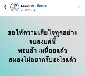 ด้าน แอนนา ทีวีพูล เพื่อนของแตงโม มีการโพสต์บนเพจเฟซบุ๊กเช่นเดียวกัน ระบุข้อความว่า “ขอให้ความเสียใจทุกอย่างจบลงแค่นี้พอแล้วเหนื่อยแล้วสมองไม่อยากรับอะไรแล้ว” จากนั้นได้ไลฟ์สดร่ำไห้แสดงความเสียใจ และขอโทษแม่แตงโม พร้อมบอกว่าจากนี้จะไม่ยุ่งเรื่องการจัดงานของแตงโมอีกแล้ว ขอประชาชนอย่าโทษคุณแม่ เพราะอาจมีเรื่องที่เข้าใจไม่ตรงกัน
