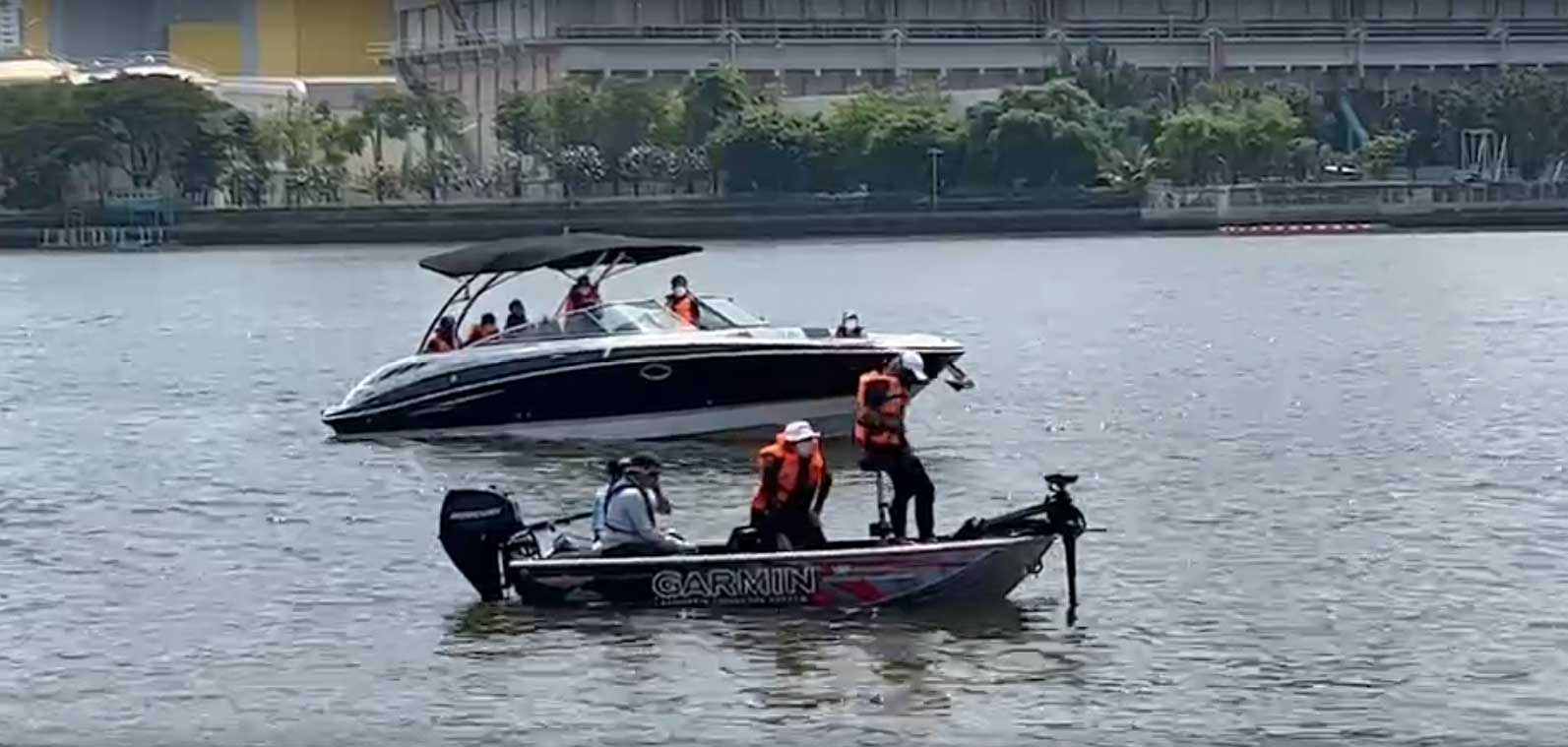 ล่าสุด เจ้าหน้าที่นำเรือสปีดโบ๊ท 2 ลำ ขับออกมาจากอู่จอดเรือ NBC Boat Club ลำหนึ่งเป็น cobalt รุ่นเดียวกันกับลำเกิดเหตุ และอีกลำเป็นรุ่นอื่น โดยมุ่งหน้าสู่ท่าเรือพิบูลสงคราม 1 โดยเจ้าหน้าที่ไม่ได้เคลื่อนเรือด้วยความเร็วที่บริเวณท่าเรือดังกล่าว แต่ได้จอดเรือไว้นิ่งๆ และเคลื่อนที่ไปจอดต่อไปในแต่ละจุด คาดว่าเป็นการจำลองเหตุการณ์ นำมาเปรียบเทียบพิกัด GPS หรือดาวเทียมอีกครั้ง พร้อมทั้งนำอุปกรณ์โซนาร์มาใช้ตรวจหาวัตถุใต้น้ำด้วย เพื่อเปรียบเทียบลักษณะของการตกเรือ ว่าขณะตกเรือจะจมเลยหรือจะลอยก่อน