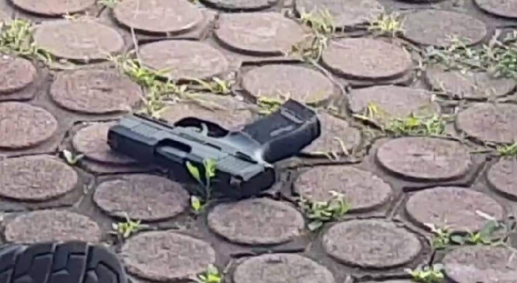 ใกล้กัน พบอาวุธปืนขนาด 9 มม.ยี่ห้อซิกเซาเออร์ และกระเป๋าถือของ ผู้หญิง เก็บไว้เป็นหลักฐานจากการสอบสวนทราบว่า ก่อนเกิดเหตุ วันนี้ เป็นวันที่โรงเรียนนัดรับมอบตัว นักเรียนชั้น ม.1 ที่สอบผ่านการคัดเลือกได้เข้าเรียนในเวลา 08.00 น. แม่ได้ นำบุตรชายวัย 12 ปี มามอบตัว ปรากฎว่า สามีขับรถยนต์ ตามเข้ามา แล้วเกิดมีปากเสียง กับแม่เด็กอย่างรุนแรง ก่อนที่ฝ่ายชาย จะใช้อาวุธปืนขนาด 9 มม. ยิงที่ลำตัวและแขน ของผู้หญิง