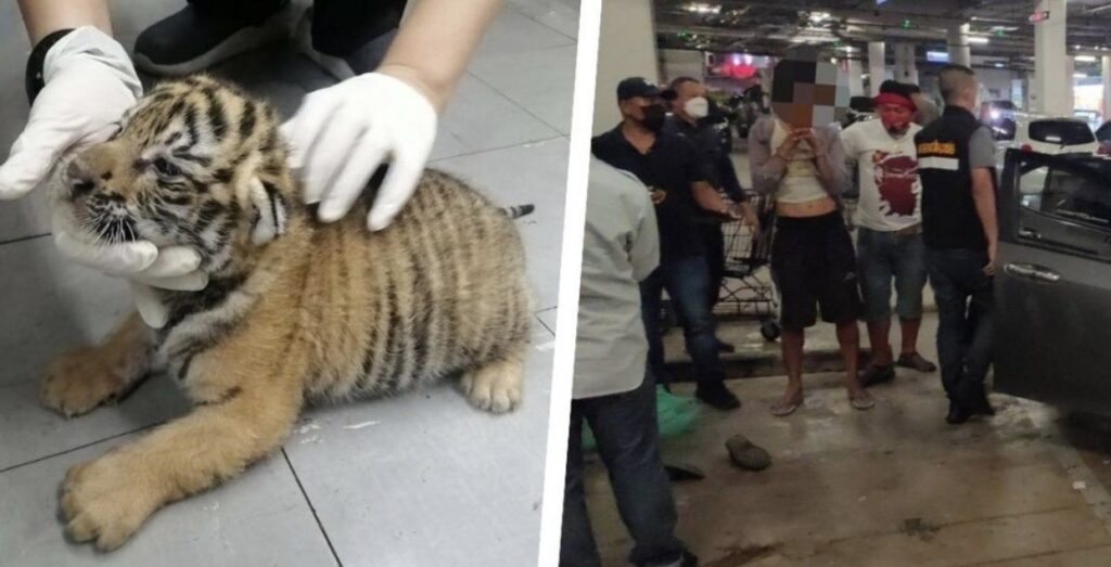 โดยเมื่อวันที่ 5 เมษายน 2565 ที่ผ่านมา เวลา 19.05 น. เจ้าหน้าที่ได้เดินทางมาถึงสถานที่ดังกล่าวพบชาย จำนวน 1 คน ขับรถยนต์เก๋ง ฮอนด้าซิตี้สีเทา เข้ามาในลานจอดรถ ชั้น G เพื่อรอส่งมอบสัตว์ป่าให้กับชาย จำนวน 2 คน ซึ่งรออยู่ก่อนแล้ว เจ้าหน้าที่จึงได้เข้าแสดงตัวและเข้าตรวจจับกุมผู้ต้องหาจำนวน 3 คน พร้อมของกลาง ลูกเสือโคร่ง อายุประมาณ 4 เดือน จำนวน 1 ตัว มูลค่า 400,000 บาท ซึ่งเป็นสัตว์ป่าคุ้มครองจำพวกสัตว์เลี้ยงลูกด้วยนม และอุปกรณ์การกระทำผิด