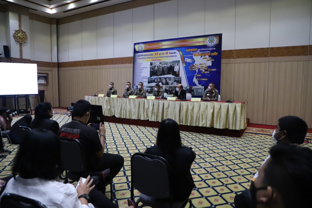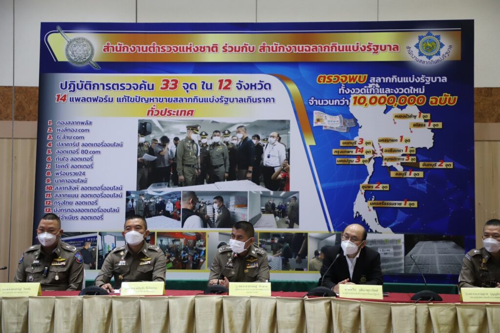 พล.ต.ท.สุรเชษฐ์ หักพาล ผู้ช่วย ผบ.ตร. ร่วมกับ นายทวีป วุฒิบาทุกาจิตต์ รองผู้อำนวยการสำนักงานสลากกินรัฐบาล และตัวแทนที่เกี่ยวข้องร่วมกันแถลงผลปฏิบัติการ เข้าตรวจค้นตามหมายค้น 33 จุดใน 12 จังหวัด เพื่อดำเนินคดีกับบริษัทหรือผู้ประกอบการที่มีพฤติกรรมในการจำหน่ายสลากกินแบ่งรัฐบาลผ่านระบบแพลตฟอร์มออนไลน์ ในราคาสูงกว่าที่กฎหมาย14แพลตฟอร์มรวมกว่า 10 ล้านฉบับ
