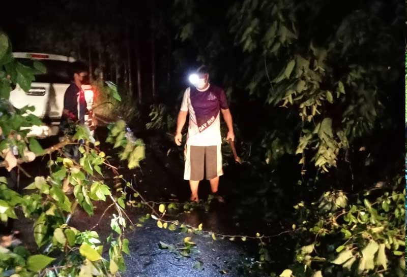 ออกสำรวจสภาพความเสียหาย พบว่า มีต้นไม้ล้มทับรถยนต์ กีดขวางถนน เจ้าหน้าที่อบต. และชาวบ้าน ต้องออกมาช่วยกันตัดต้นไม้ กิ่งไม้ ดังกล่าว เพื่อให้พ้นเส้นทางสัญจรของประชาชน