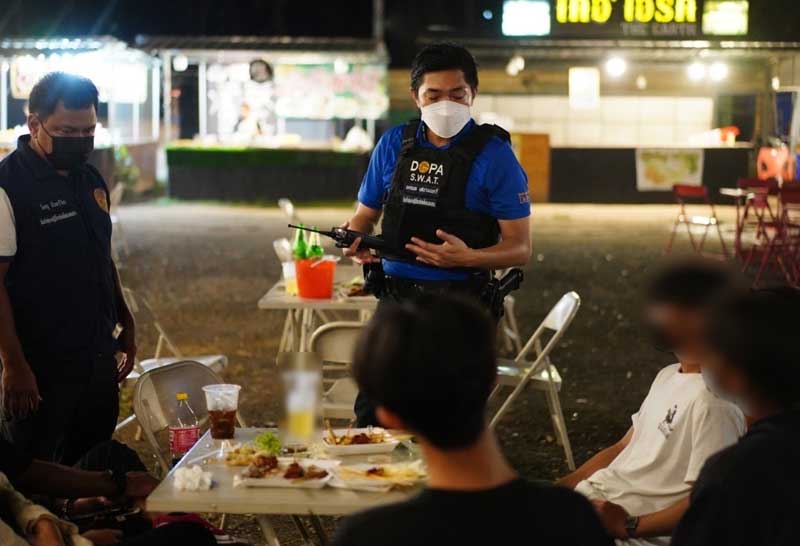 4.จำหน่ายสุราโดยไม่มีใบอนุญาต โดยพนักงานฝ่ายปกครองได้นำตัวผู้ถูกจับไปทำบันทึกจับกุม ณ ที่ว่าการอำเภอเมืองกาญจนบุรี ส่วนเด็กและเยาวชนที่มาเที่ยวดื่มกินภายในร้าน ได้ประสานผู้ปกครองให้มารับตัวพากลับบ้าน