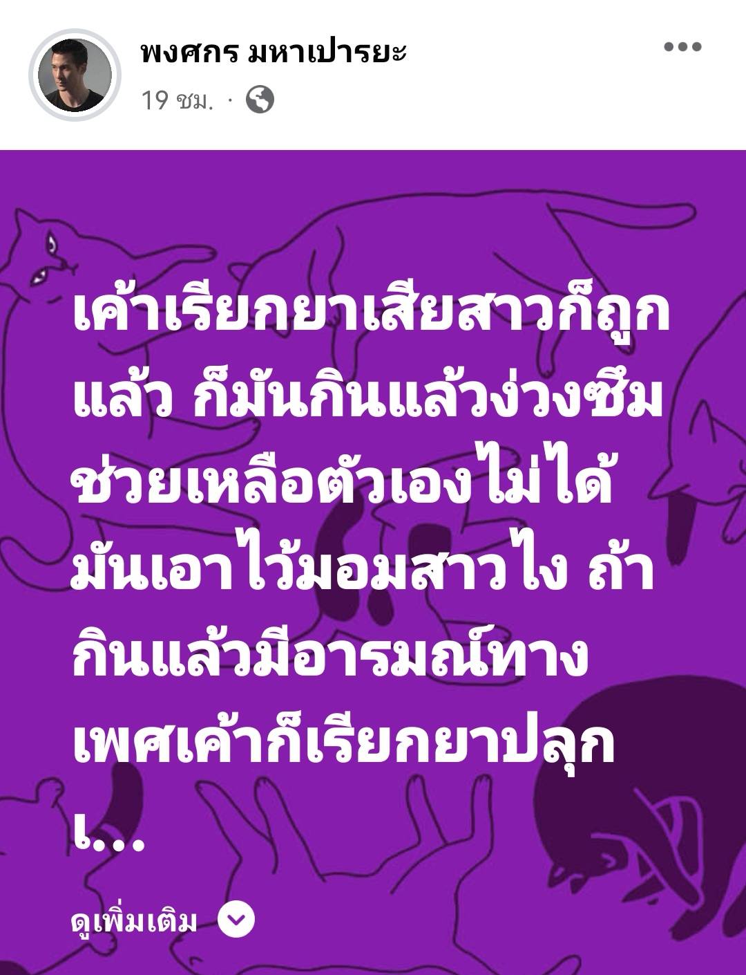 “แต๊ง พงศกร” FB “เขาเรียกยาเสียสาวก็ถูกแล้ว”