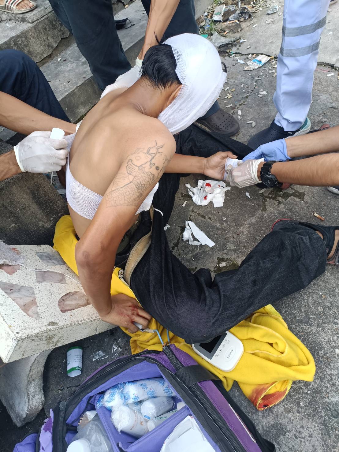 ขณะที่จากการตรวจสอบอาการล่าสุดของผู้บาดเจ็บ ซึ่งเป็นเยาวชน อายุ 15 ปี ที่ถูกแทงด้วยอาวุธมีดบริเวณหน้าท้อง 1 แผล และได้ถูกนำตัวส่งโรงพยาบาลนพรัตนราชธานี ล่าสุดพ้นขีดอันตรายและออกจากห้องไอซียูแล้ว โดยถูกส่งตัวไปดูอาการต่อที่ห้องพักฟื้น ซึ่งบาดแผลดังกล่าว เจ้าหน้าที่โรงพยาบาลเปิดเผยว่าเป็นบาดแผลที่ถูกแทงด้วยวัตถุลักษณะคล้ายไขควง ส่วนบริเวณนิ้วซ้ายมีรอยถูกของมีคมบาด 1 แผล
