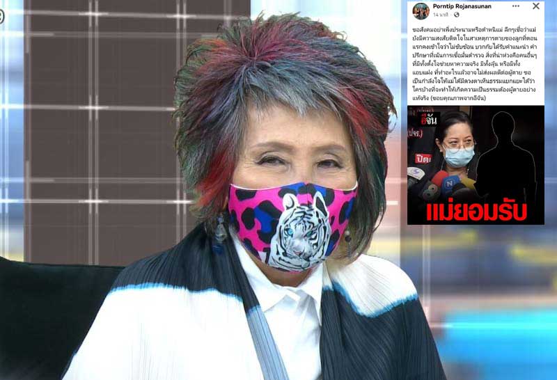 ด้าน พญ.คุณหญิงพรทิพย์ โรจนสุนันทร์ ได้โพสต์ข้อความในเพจ” Porntip Rojanasunan“โดยขอสังคมอย่าเพิ่งประณามหรือตำหนิแม่ ลึกๆ เชื่อว่าแม่ยังมีความสงสัยติดใจในสาเหตุการตายของลูกที่ตอนแรกคงเข้าใจว่าไม่ซับซ้อน บวกกับได้รับคำแนะนำ คำปรึกษาที่เน้นการเชื่อมั่นตำรวจ