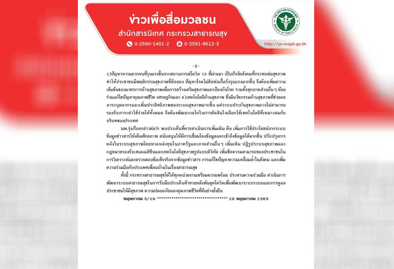 ปลัดสธ.เผยผลวิจัยสถานการณ์โควิด-19 ดีขึ้นมาก ให้ทุกหน่วยงานเตรียมความพร้อม พัฒนาระบบสาธารณสุขรับมือประเด็นท้าทายหลังพ้นยุคโควิด