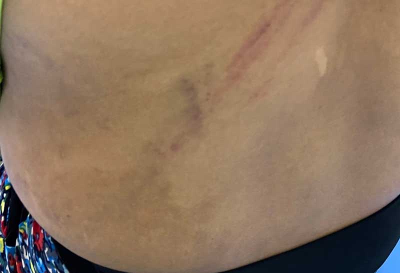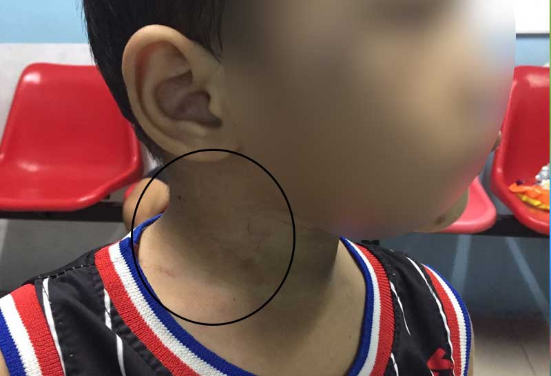 จนมีร่องรอยเขียวช้ำทั่วตัว เมื่อนางเอ๋ (นามสมมุติ) ผู้เป็นแม่เข้าไปห้ามปรามพ่อเลี้ยงจึงได้มีปากเสียงกันรุนแรงและพ่อเลี้ยงได้ทำร้ายแม่เด็กจนน่วมอยู่กลางถนนในซอยบ้าน