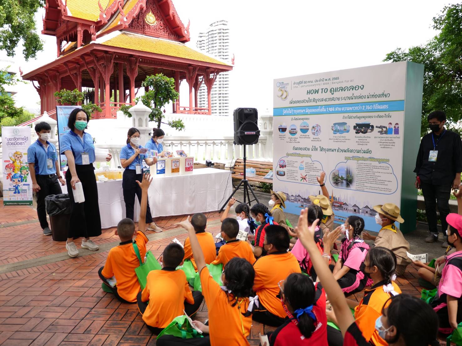 วันนี้ (7 ก.ค. 65) กรุงเทพมหานคร โดยสำนักงานประชาสัมพันธ์ จัดกิจกรรมการมีส่วนร่วม “อวดกรุงเทพฯ เมืองแห่งคลอง” ภายใต้โครงการก้าวสู่ปีที่ 50 กทม. โดยมีผู้เข้าร่วมกิจกรรม ประกอบด้วย นักเรียนจากโรงเรียนในสังกัด กทม. ครู และเจ้าหน้าที่ กทม. ตลอดจนสื่อมวลชน จำนวนกว่า 100 คน ณ สวนสันติชัยปราการ เขตพระนคร