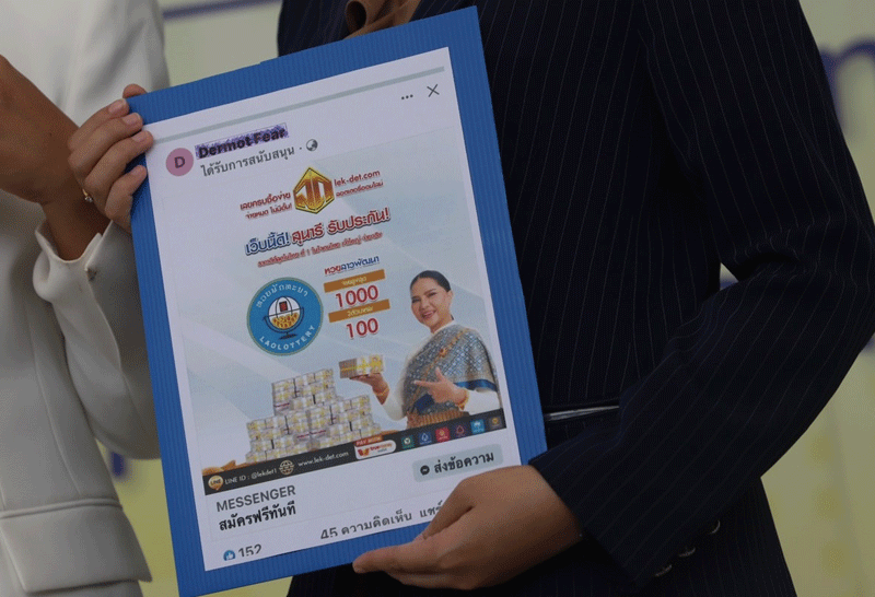 วันนี้ (16 ก.ค.65) เวลา 11.00 น. ที่ ศูนย์รับแจ้งความกองบัญชาการสอบสวนกลาง นักร้องลูกทุ่งชื่อดัง สุนารี ราชสีมา ในฐานะพรีเซ็นเตอร์ของหงษ์ทอง.com ซึ่งจัดจำหน่ายสลากกินแบ่งบนเว็บไซต์ออนไลน์