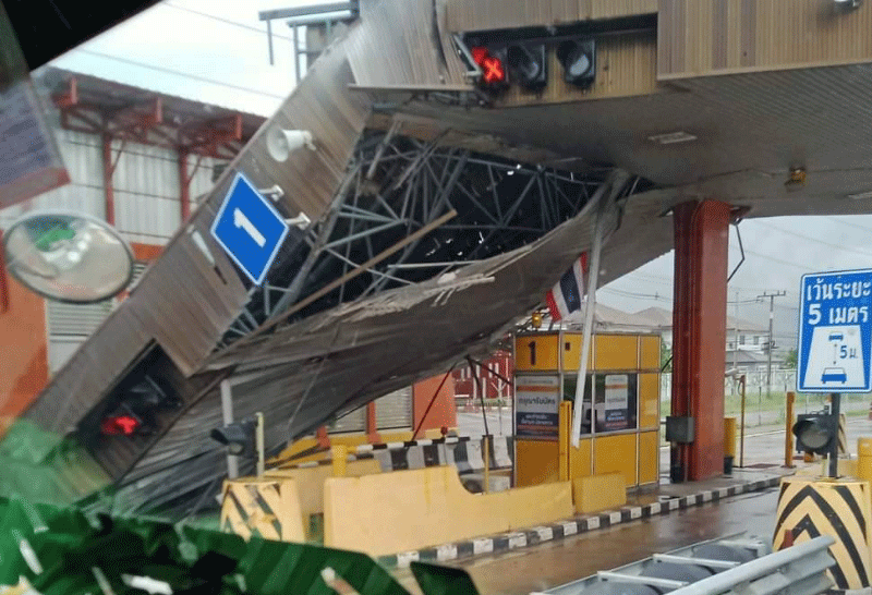 อีกแล้ว! ซุ้มด่านเก็บเงินบางปะกง พังถล่มหลังฝนตกหนัก