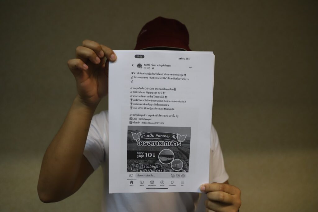 โดยตนจะได้ปันผลเมื่อ 25 ก.ค. 65 ที่ผ่านมาแต่ฟาร์มเห็ดดังกล่าวกลับไม่จ่ายตามสัญญา พร้อมทั้งเริ่มมีผู้เสียหายออกมาแจ้งความตนจึงมั่นใจว่าถูกโกง ก่อนหน้านี้ตนเคยคิดสั้นจบชีวิตเพราะไม่มีทางออก