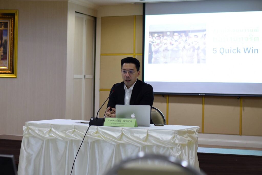 วันนี้ (5 ส.ค. 65) นายเอกวรัญญู อัมระปาล ผู้ช่วยเลขานุการผู้ว่าราชการกรุงเทพมหานคร และโฆษกของกรุงเทพมหานคร ร่วมด้วยนายวิศณุ ทรัพย์สมพล รองผู้ว่าราชการกรุงเทพมหานคร แถลงผลการดำเนินงาน 60 วันของผู้ว่ากรุงเทพมหานครโดยแบ่งเป็น 6 มิติด้วยกันคือ 1.สาธารณสุข 2.การเปิดเผยข้อมูลสาธารณะ 3.เมืองสร้างสรรค์ 4.ฟื้นเศรษฐกิจเมือง 5.เพิ่มประสิทธิภาพในการแก้ไขปัญหาเช่น Traffy Fondue และ 6.การปลูกต้นไม้