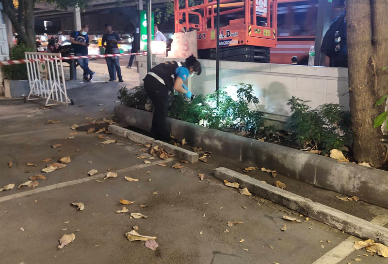 ส่วนจะเกี่ยวกับกลุ่มคนไทยและกลุ่มวีโว่ที่มาร่วมสังเกตการณ์อยู่บริเวณใกล้เคียงหรือไม่ ยังตอบไม่ได้ เนื่องจากใครจะก่อเหตุก็ได้ แต่คาดว่าคนร้ายโยนวัตถุดังกล่าวมาจากด้านบนของรถไฟฟ้า ซึ่งอยู่ห่างจากสถานทูตไม่ต่ำกว่า 100เมตร