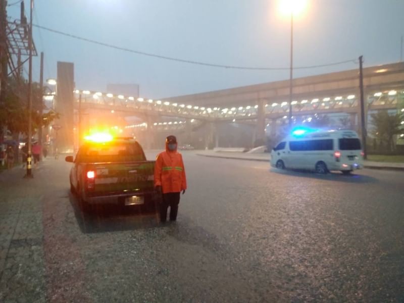 วันที่ 6 กันยายน 2565/ เวลา 18.15 น. ฝนเล็กน้อยถึงปานกลางเขตดอนเมือง สายไหม คลองสามวา บางเขน หลักสี่ บางซื่อ จตุจักร ลาดพร้าว บึงกุ่ม บางกะปิ วังทองหลาง ห้วยขวาง วัฒนา ดินแดง ราชเทวี พญาไท เขต / ปริมาณฝนสูงสุดเขตหลักสี่ 72.0 มม. จากการตรวจสอบสถานการณ์ฝนตกพบว่า มีฝนตกหนักและน้ำท่วมในพื้นที่ ถ.รังสิตปทุม-ธานี หน้าหมู่บ้านรัตนโกสินทร์ 200ปี ถ.รังสิตนครนายก ทางเข้า-ออก ฟิวเจอร์พาร์ค ,และด้านข้างเมเจอร์ รังสิต ต่างระดับรังสิต ถ.พหลโยธิน ขาเข้า หน้าฟิวเจอร์พาร์ค – รพ.ราชวิถี 2 (รังสิต) -หน้าปั๊มเอสโซ่ ก่อนถึงป้ายรถประจำทาง หมู่บ้านเมืองเอก ช่องทางขนาน