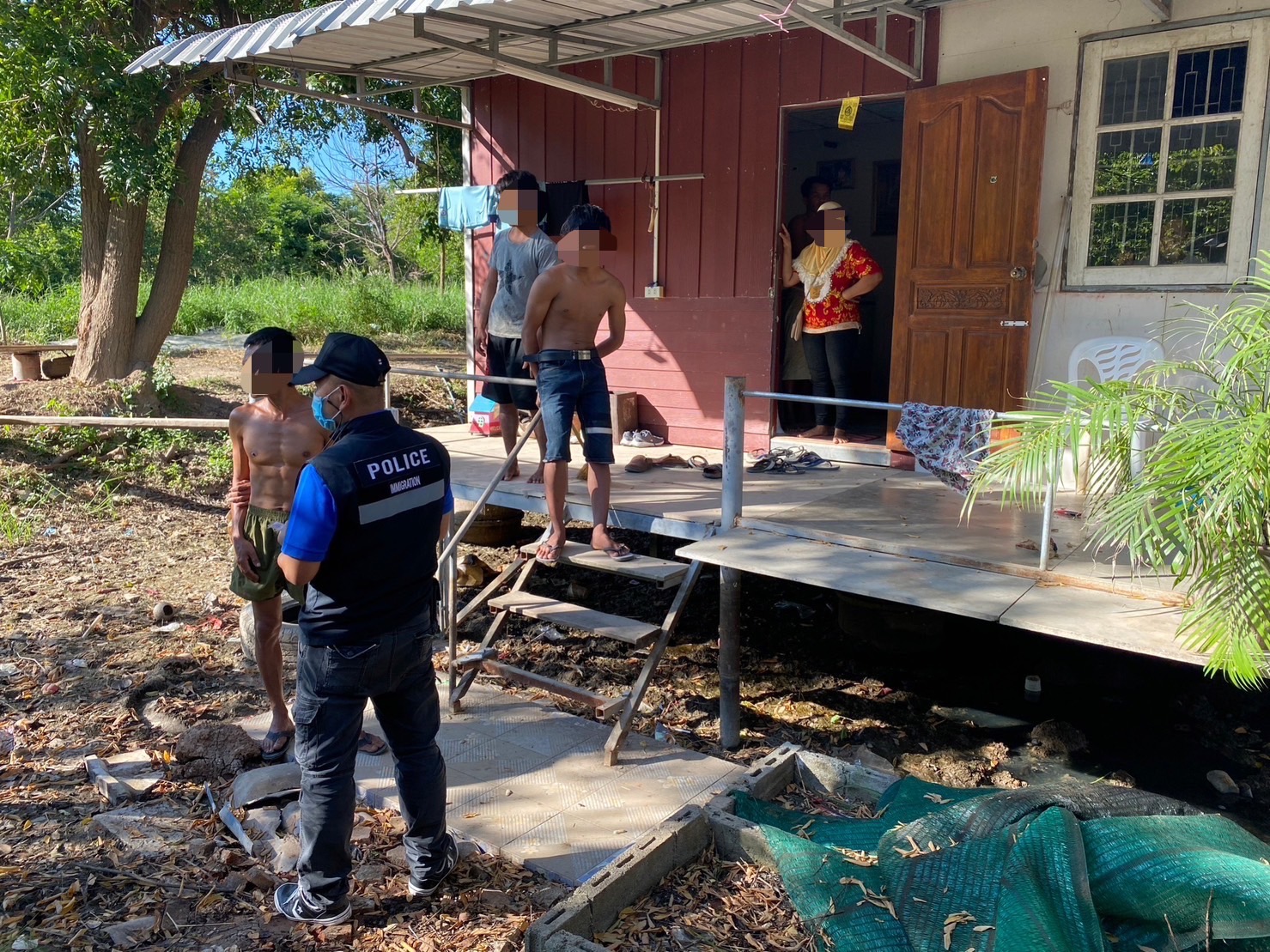 เมื่อมาถึงที่เกิดเหตุพบเพิงพักไม่มีเลขที่ ต.บางเสด็จ อ.ป่าโมก จ.อ่างทอง จึงเข้าตรวจสอบพบคนต่างด้าวลักษณะท่าทางมีพิรุธ จึงขอตรวจสอบเอกสาร และจากการตรวจสอบพบว่ามีบุคคลต่างด้าวสัญชาติกัมพูชาเป็นชายจำนวน 5 คนไม่มีเอกสารใดๆมาแสดง
