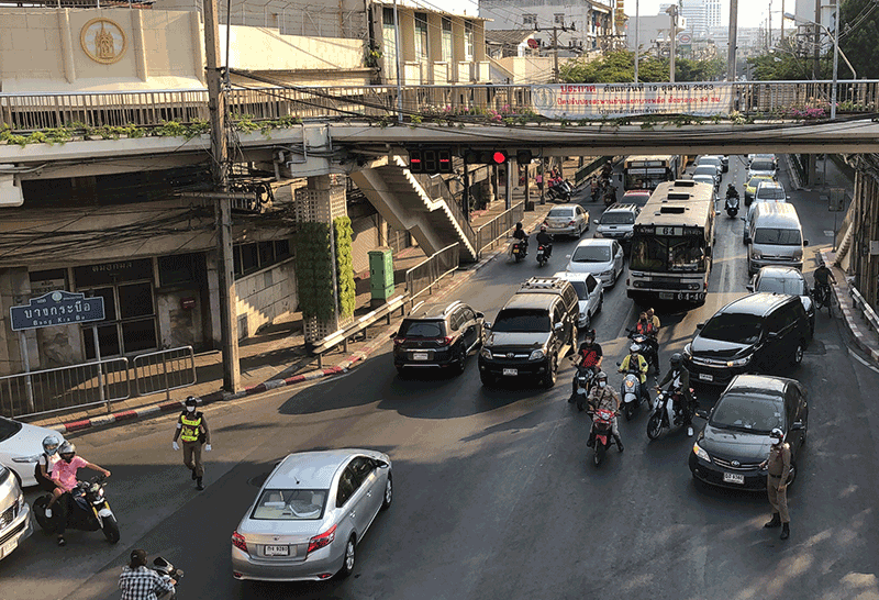 บรรยากาศบนถนนสามเสนจากแยกบางกระบือ มุ่งหน้าแยกเกียกกาย ซึ่งเป็นจุดบริเวณผ่านด้านหน้าอาคารรัฐสภา ล่าสุดเจ้าหน้าที่ตำรวจสน.บางโพ ได้ปิดการจราจร จากแยกบางกระบือมุ่งหน้าแยกเกียกกาย โดยบังคับให้รถที่มาจากถนนสามเสนเลี้ยวขวาเข้าถนนอำนวยสงคราม เพื่อหลีกเลี่ยงการชุมนุมของกลุ่มผู้ชุมนุมบริเวณด้านหน้าอาคารรัฐสภา ทำให้การจราจรติดขัดจึงขอแนะนำประชาชนที่จะสัญจรผ่านบริเวณนี้หลีกเลี่ยงเส้นทางการจราจร