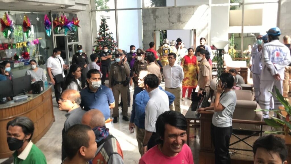 ที่เกิดเหตุเป็นแมนชั่นหรู สูง 42 ชั้น จากการตรวจสอบห้องเลขที่ 1349/118 อาคารบี ชั้น 40 มีกลุ่มควันและแสงเพลิงพวยพุ่งออกจากระเบียงห้อง เจ้าหน้าที่จึงเร่งอพยพผู้พักอาศัยภายในอาคาร ทั้งคนไทยและต่างชาติ ผู้สูงอายุ ลงจากห้องพัก มารวมที่สนามด้านล่างนับร้อยชีวิต จากนั้นส่งชุดเฉพาะกิจ ปฏิบัติการดับเพลิงภายในอาคารบนจุดเกิดเหตุ เพื่อทำการฉีดน้ำดับเพลิง ใช้เวลานานกว่า 15 นาที เพลิงจึงสงบ