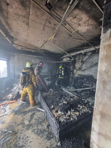 วันนี้(19 ธ.ค. 65) พ.ต.ท.สมบัติ ดำกำเนิด สวป.สน.สำเหร่ รับแจ้งเหตุเพลิงไหม้ภายในห้องชุดชั้น 40 บนอาคารแมนชั่นแห่งหนึ่งบนถนนเจริญนคร แขวงบางลำภูล่าง เขตคลองสาน กทม. จึงประสานเจ้าหน้าที่ดับเพลิง สปภ.คลองสาน และรถดับเพลิงหน่วยบรรเทาสาธารณภัย 3 คัน รุดไปตรวจสอบ