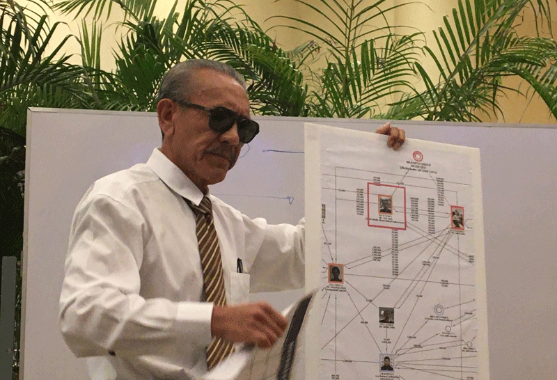 พร้อมโชว์เครือข่ายเส้นทางการเงินและเส้นทางประวัติการโทรศัพท์ของผับจินหลิง ที่มีการโอนเงินไปให้นายฟูจิ ซิง ,นายหยางเฉิน (หนี) ,นายเซนดิ ,แล้วโอนเข้าบัญชีม้าของนายสิทธิพงษ์ จากนั้นโอนไปที่บริษัทโมเดิร์นเจมส์ ซึ่งมีนายตู้ห่าว นายจินฟู พร้อมนอมินีถือหุ้น โอนกลับไปหมุนที่จินหลิง ครั้งละหลายล้านบาท