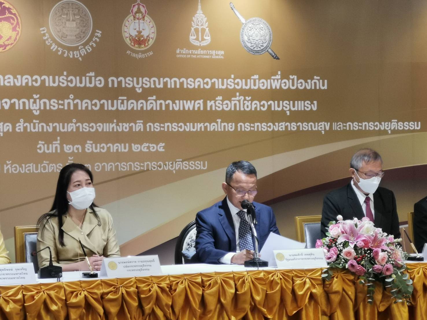 วันนี้ (23 ธ.ค. 65) นายสมศักดิ์ เทพสุทิน รัฐมนตรีว่าการกระทรวงยุติธรรม เป็นประธานสักขีพยานพิธีลงนามบันทึกข้อตกลงความร่วมมือบูรณาการ เพื่อป้องกันการกระทำความผิดซ้ำจากผู้กระทำความผิดคดีทางเพศหรือใช้ความรุนแรง ระหว่างสำนักงานศาลยุติธรรม สำนักงานอัยการสูงสุด สำนักงานตำรวจแห่งชาติ กระทรวงมหาดไทย กระทรวงสาธารณะสุข และกระทรวงยุติธรรม ณ อาคารกระทรวงยุติธรรม