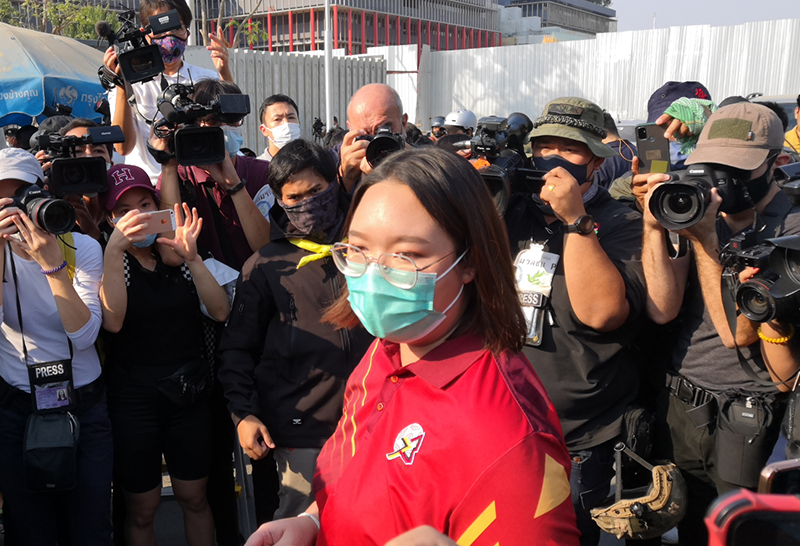 น.ส.ปนัสยา สิทธิจิรวัฒนกุล หรือรุ้ง แกนนำกลุ่มราษฎร เดินทางมายังรัฐสภา แยกเกียกกาย ถ.สามเสน หลังกลุ่มธรรมศาสตร์และการ ชุมนุม นัดรวมตัวจัดกิจกรรมอภิปรายไม่ไว้วางใจนอกสภา