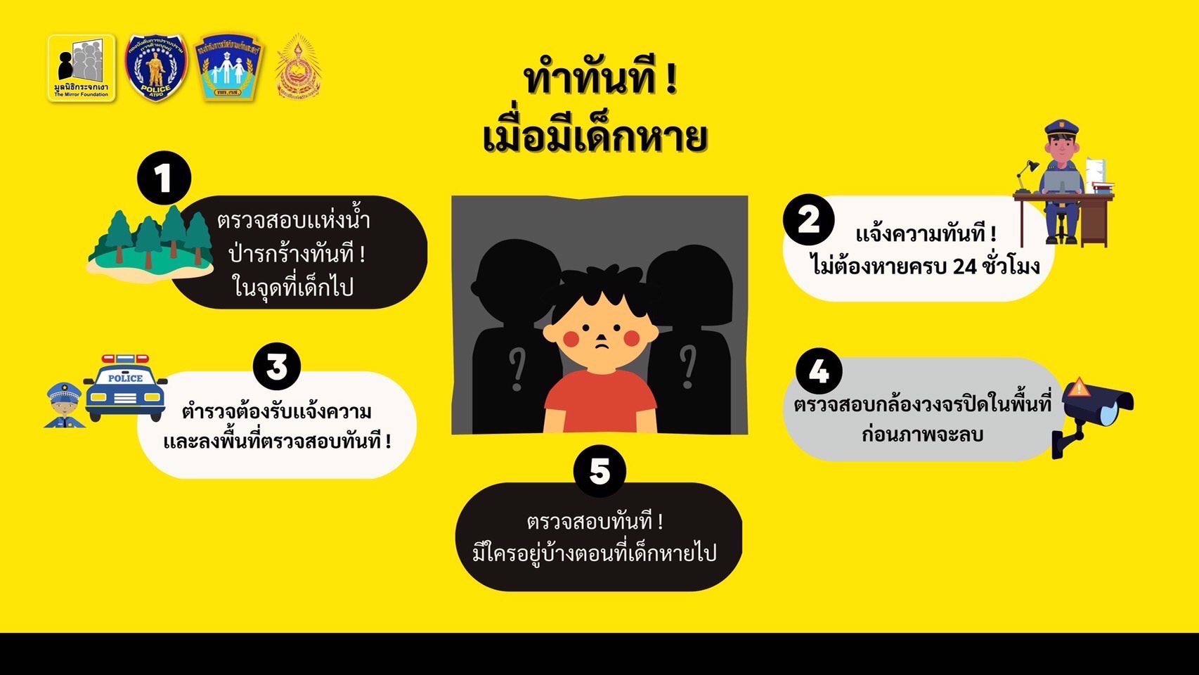 มูลนิธิกระจกเงาจับมือตำรวจ ปคม. และ กก.ดส. เปิดสถิติเด็กหายเพิ่มสูงขึ้นในรอบ 4 ปี พร้อมเตือนภัยเด็กหายก่อนวันเด็กแห่งชาติ