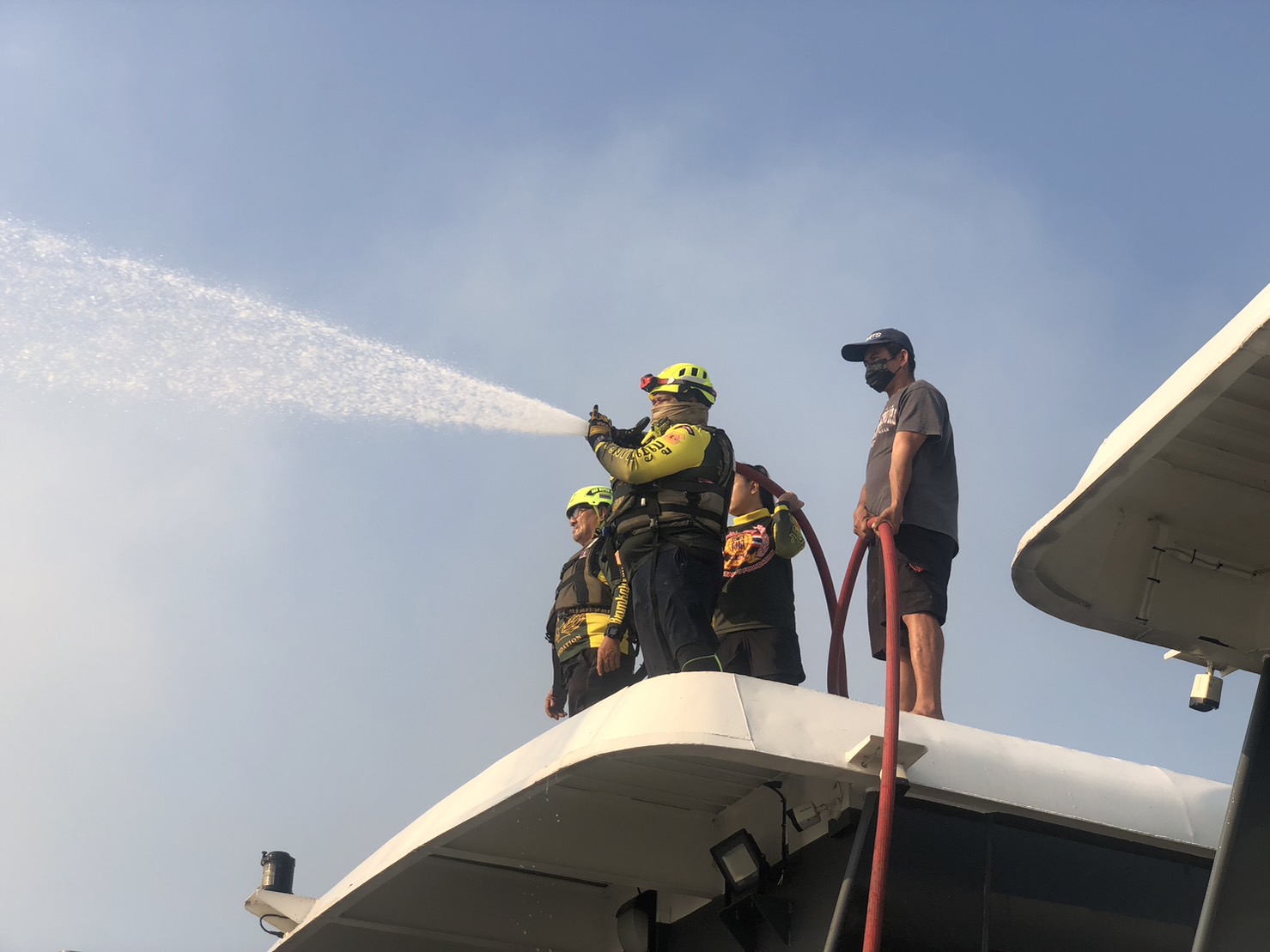 โดยนักดับเพลิงมูลนิธิร่วมกตัญญู ใช้เวลาระดมฉีดน้ำ และน้ำยาเคมีนานกว่า 1 ชั่วโมง จนสามารถควบคุมเพลิงเอาไว้ได้ แต่ว่าต้องทำงานด้วยความระมัดระวัง เพราะมีอุปสรรคปัญหา เนื่องจากเรือที่เกิดเหตุเป็นเรือไฟฟ้า เกิดเพลิงไหม้ติดต่อกัน 3 ลำ รวมถึงมีเรือจอดติดๆกันรวมแล้ว 6 ลำ นอกจากนี้ยังมีเสียงระเบิดดังขึ้นเป็นระยะ ๆ ประกอบกับควันพวยพุ่ง