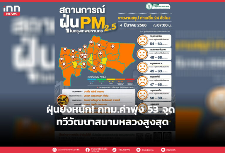 ฝุ่นยังหนัก! กทม.ค่าพุ่ง53 จุด ทวีวัฒนาสนามหลวงสูงสุด