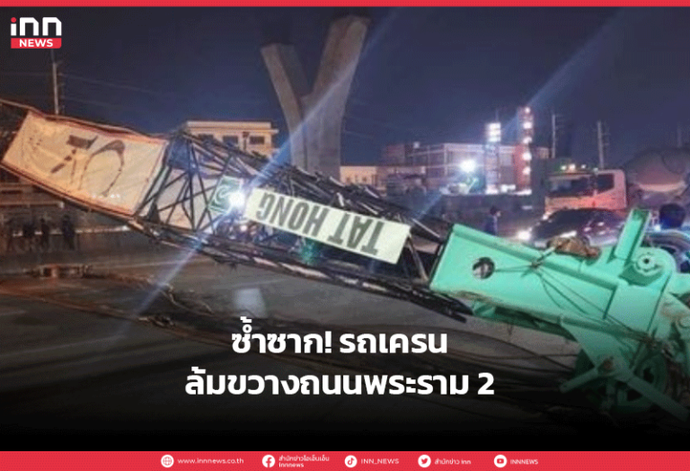 ไม่เคยแผ่ว! รถเครนทำทางยกระดับ ล้มขวางถนนพระราม 2 คาดหมุดเหล็กยึดฐานตัวรถขาด จนท. เคลื่อนย้ายแล้ว -ตร.จ่อเรียกผู้เกี่ยวข้องสอบ