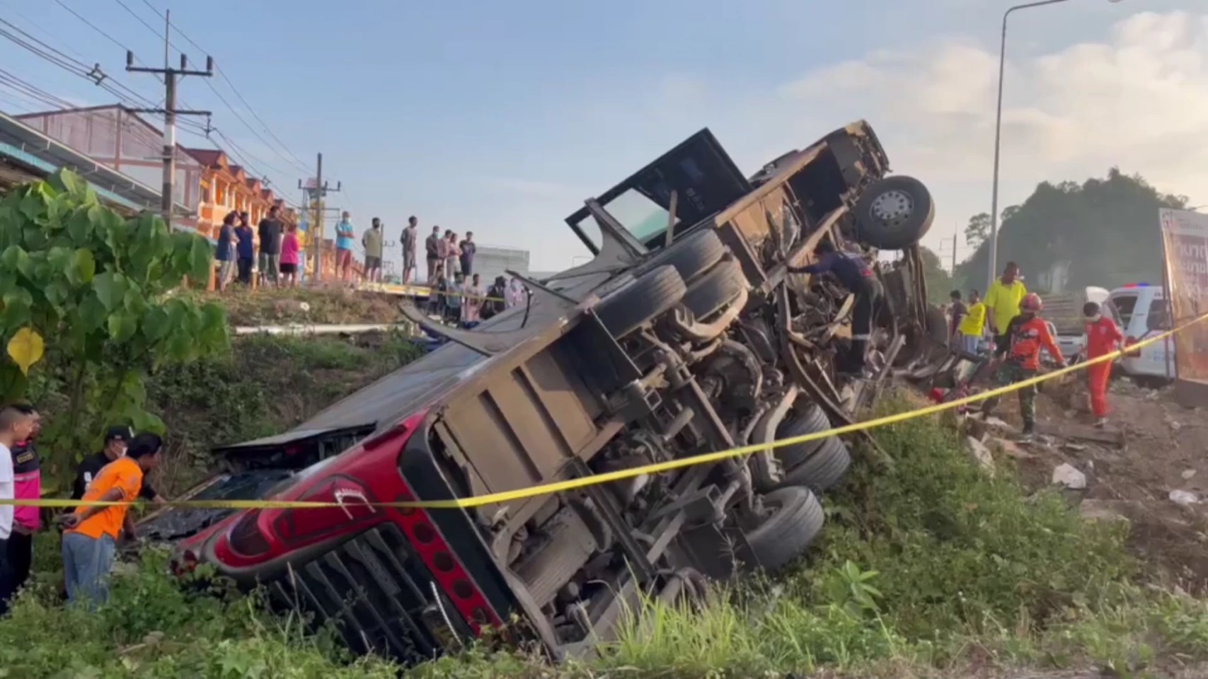 รถบัสทหารพลิกควํ่า! เสียชีวิต 1 นาย บาดเจ็บอื้อ