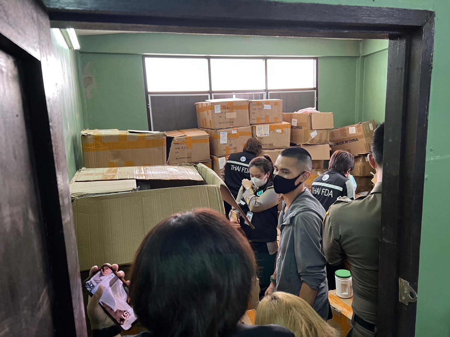 ต่อมาในวันที่ 21 มีนาคม 2566 เจ้าหน้าที่ตำรวจ กก.4 บก.ปคบ. และ สำนักงานคณะกรรมการอาหารและยา(อย.) จึงได้ร่วมกันนำหมายค้นของศาลอาญากรุงเทพใต้ เข้าตรวจค้นอาคารแห่งหนึ่ง ย่านถนนบรรทัดทอง แขวงรองเมือง เขตปทุมวัน กรุงเทพมหานคร พบ นายเชง สัญชาติ จีน แสดงตัวเป็นเจ้าของสถานที่และกิจการดังกล่าว พร้อมตรวจยึดผลิตภัณฑ์สุขภาพต่างๆ ตามที่ปรากฏในเรื่องร้องเรียน และผลิตภัณฑ์อื่นๆที่เกี่ยวข้อง รวมทั้งหมด 19 รายการ รวมมูลค่าความเสียหาย 10,500,000 บาท โดยของกลางส่วนใหญ่ที่ยึดในครั้งนี้ มีบริษัทผู้นำเข้ายืนยันว่าไม่ใช่สินค้าของบริษัทตน