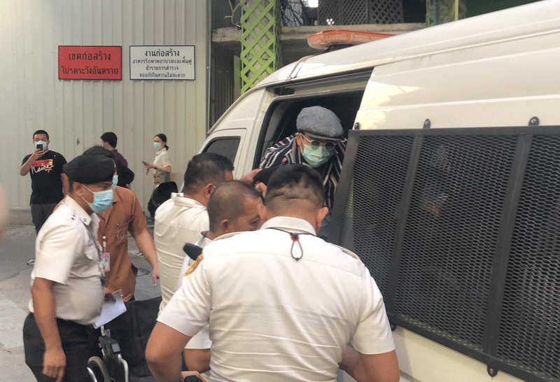 โดยหลังจากศาลมีคำสั่งไม่ให้ประกันตัว เจ้าหน้าที่ราชทัณฑ์ได้นำผู้ต้องหานั่งรถเข็นโดยใช้เส้นทางเชื่อมระหว่างอาคารเฉลิมพระเกียรติ ลงไปยังใต้ถุนลานจอดรถ เพื่อเป็นการหลีกเลี่ยงผู้สื่อข่าว ที่มาปักหลักรออยู่ด้านหน้าอาคาร โดยก่อนขึ้นรถตู้แอมมี่ได้ชูสัญลักษณ์ 3 นิ้ว