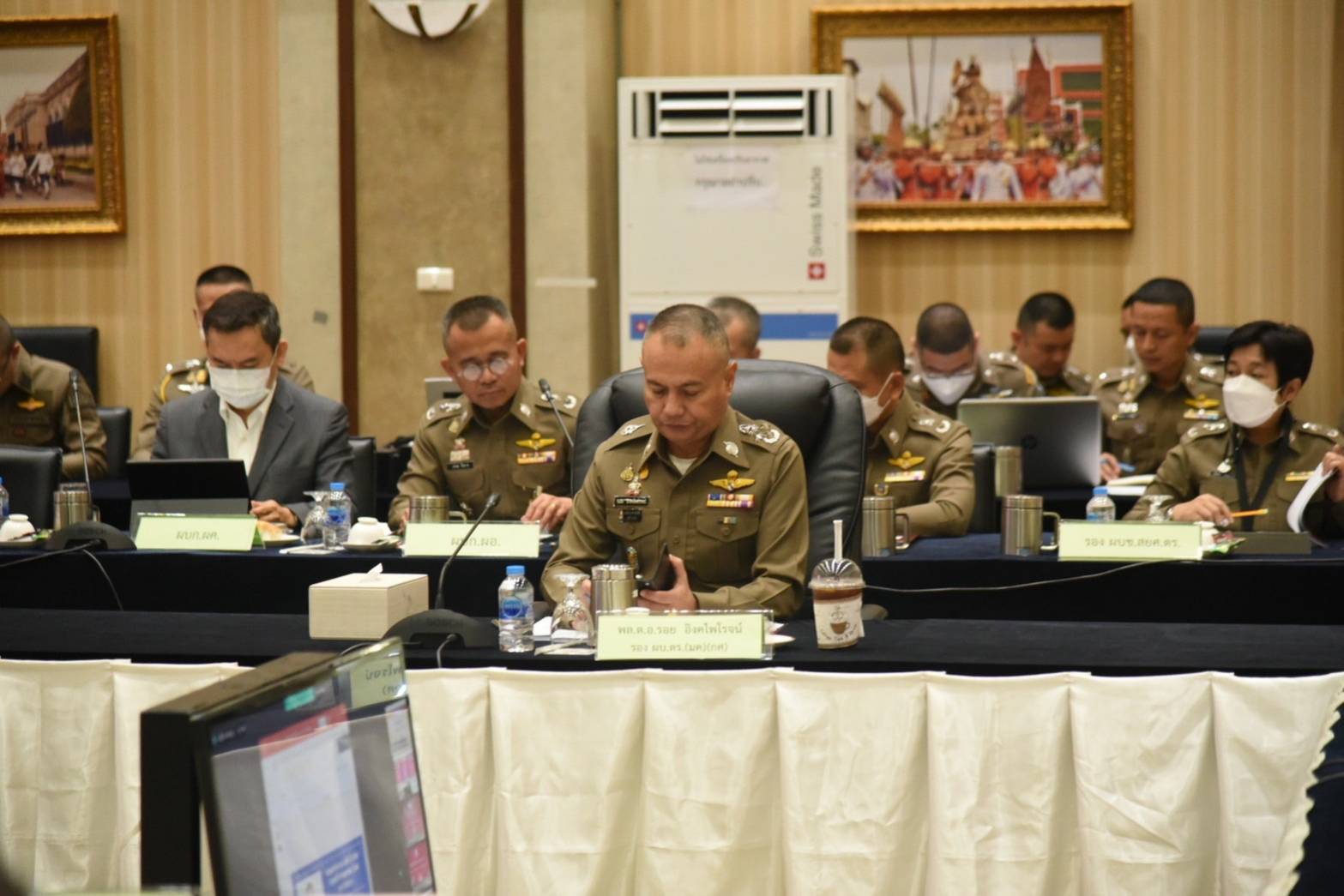 จากนั้นกล่าวเปิดการประชุมโดยขอบคุณข้าราชตำรวจทุกนายที่มีส่วนเกี่ยวข้องในการดูแลรักษาความสงบเรียบร้อยและการจัดการจราจรของการเลือกตั้งสมาชิกสภาผู้แทนราษฎรที่ผ่านมา ให้เป็นไปด้วยความเรียบร้อยร้อย จากนั้นได้รับทราบผลการดำเนินการจากโครงการต่างๆ ของ ตร. อาทิเช่น โครงการฝึกอบรมครูฝึก สำหรับการฝึกทักษะยิงปืนให้แก่ข้าราชการตำรวจผู้ปฏิบัติหน้าที่งานป้องกันปราบปราม สืบสวน และจราจรในสถานีตำรวจทั่วประเทศ, รายงานผลการดำเนินการตามแนวทางยกระดับการบริการประชาชนของสถานีตำรวจ