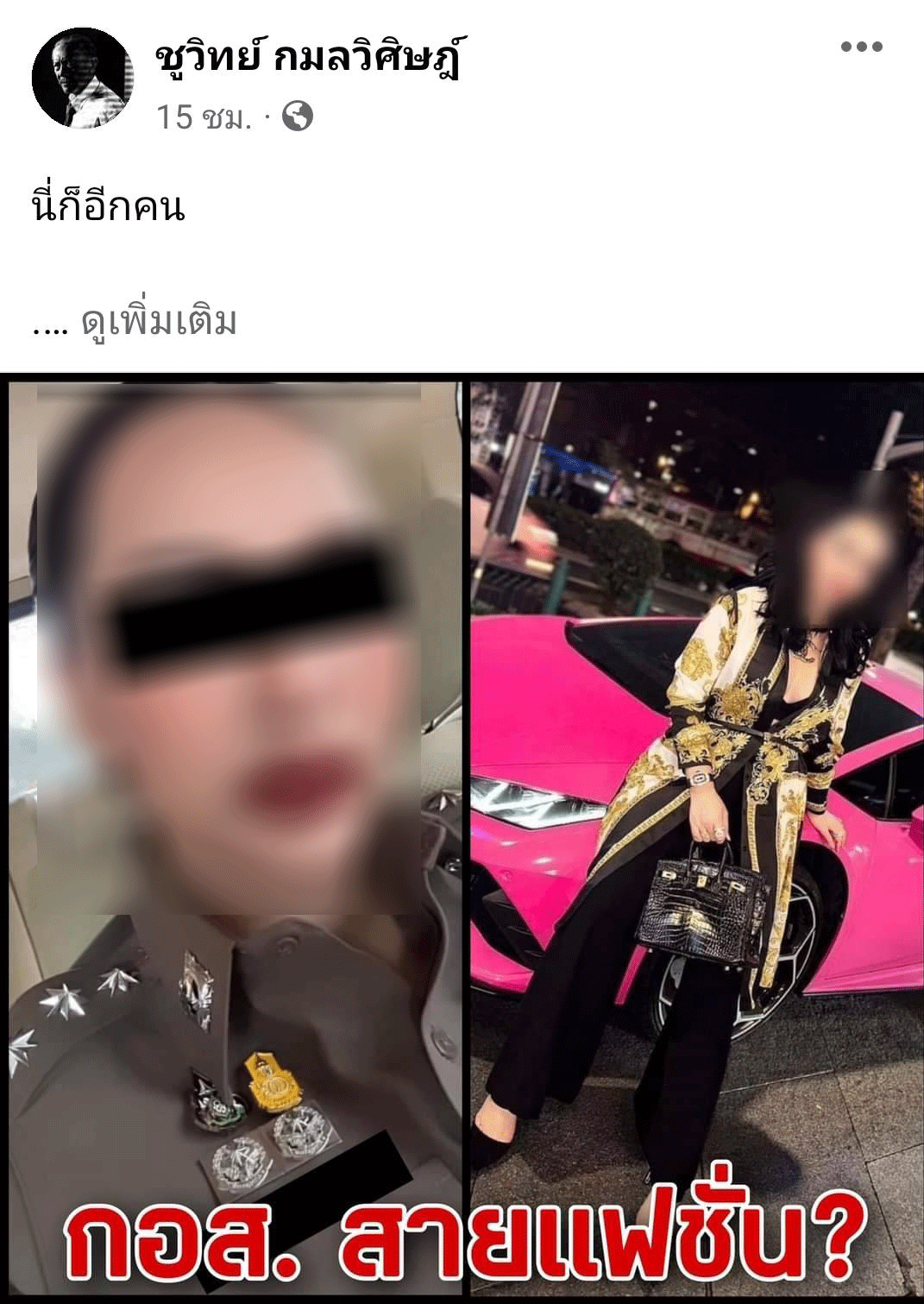 ชูวิทย์ แฉอีก! ตำรวจหญิงสายแฟชั่น กอส. รุ่นเดียวกับ ร.ต.อ.นักร้อง บ้านรวย ขับแลมโบกินี