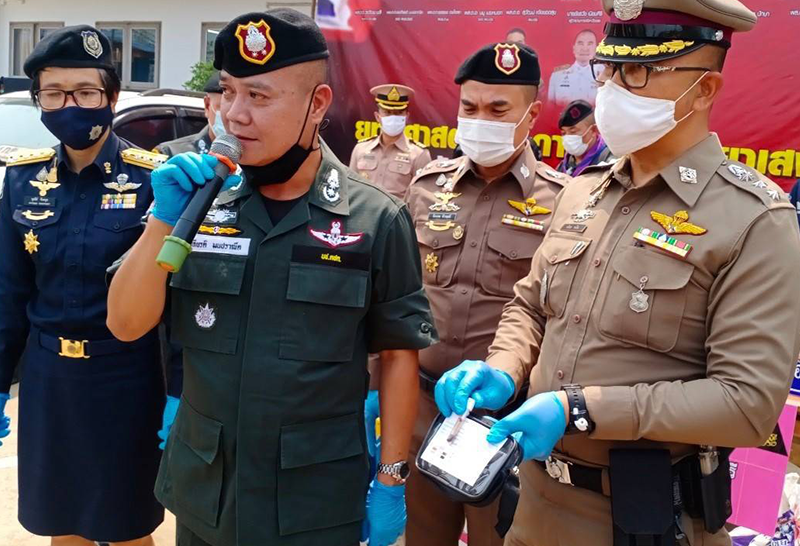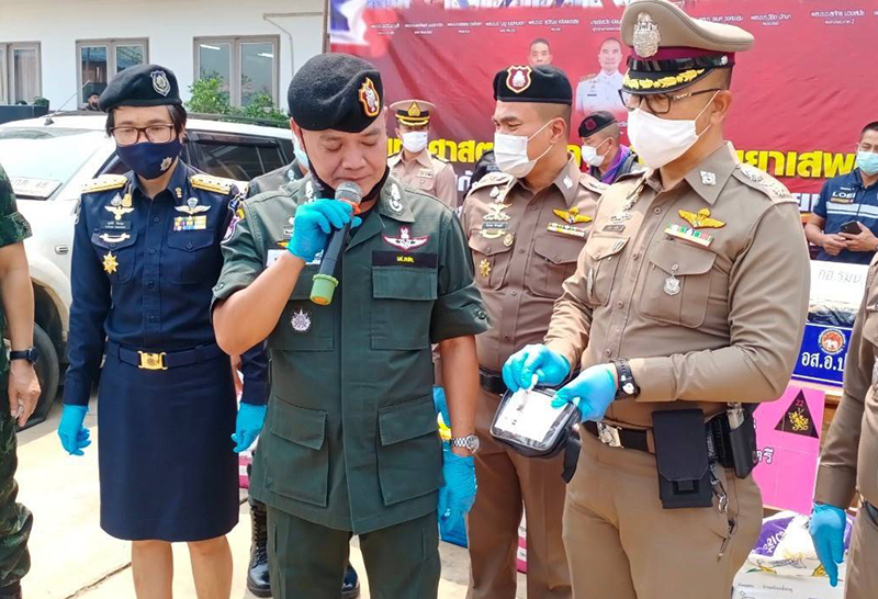 รอง ผบช.ตชด. นำทีม แถลงผลงาน รวบแก๊งค้ายา พร้อมยึดของกลางหลายรายการ ยาบ้าเกือบ 5 แสนเม็ด