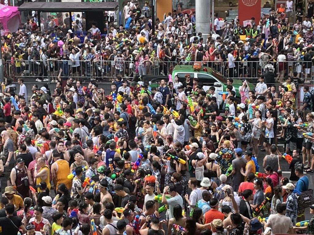 สงกรานต์ถนนสีลมวันสุดท้าย ยังคึกคัก นักท่องเที่ยวแห่เล่นน้ำกันอย่าเนืองแน่น – ปิดถนนไม่ให้คนเข้าพื้นที่ 20.00 น.