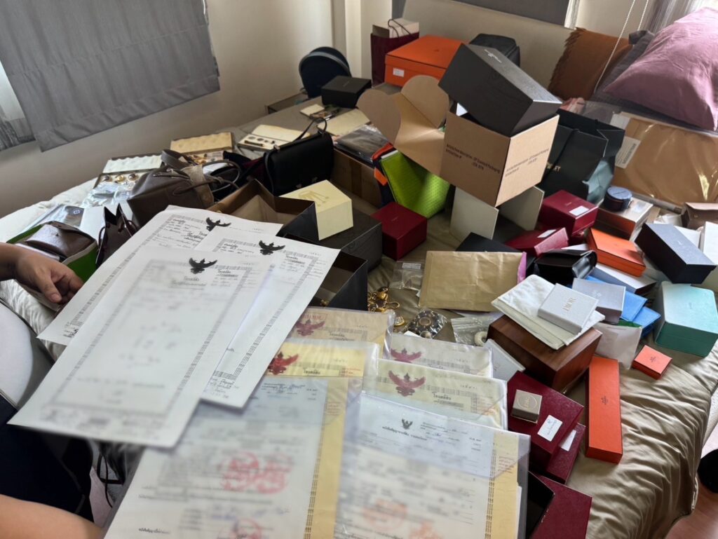 สถานที่จับกุมบริเวณในวัดชัยเภรีย์ ต.พลับพลาไชย อ.อู่ทอง จ.สุพรรณบุรีโดยตรวจยึดของกลางได้ เงินสด / นาฬิกาข้อมือ 35 รายการ /โฉนดที่ดิน 34 รายการ/ โลหะคล้ายทองคำ 59 รายการ /วัตถุมงคลพระเครื่อง 247 รายการ / สมุดบัญชีกองทุน 19 รายการ / เครื่องประดับ 104 รายการ / เครื่องแต่งกาย 129 รายการ / กระเป๋าแบน แบรนด์เนม 36 รายการ/อุปกรณ์อิเล็กทรอนิกส์ 7 รายการ รถยนต์และจักรยานยนต์ หรู 5 รายการ / กรมธรรม์ 62 รายการ/ อื่นๆ 29 รายการ / รวมทั้งหมด 780 รายการมูลค่ากว่า 250 ล้านบาท