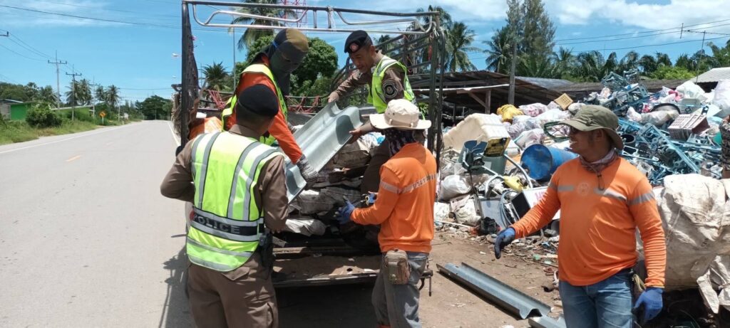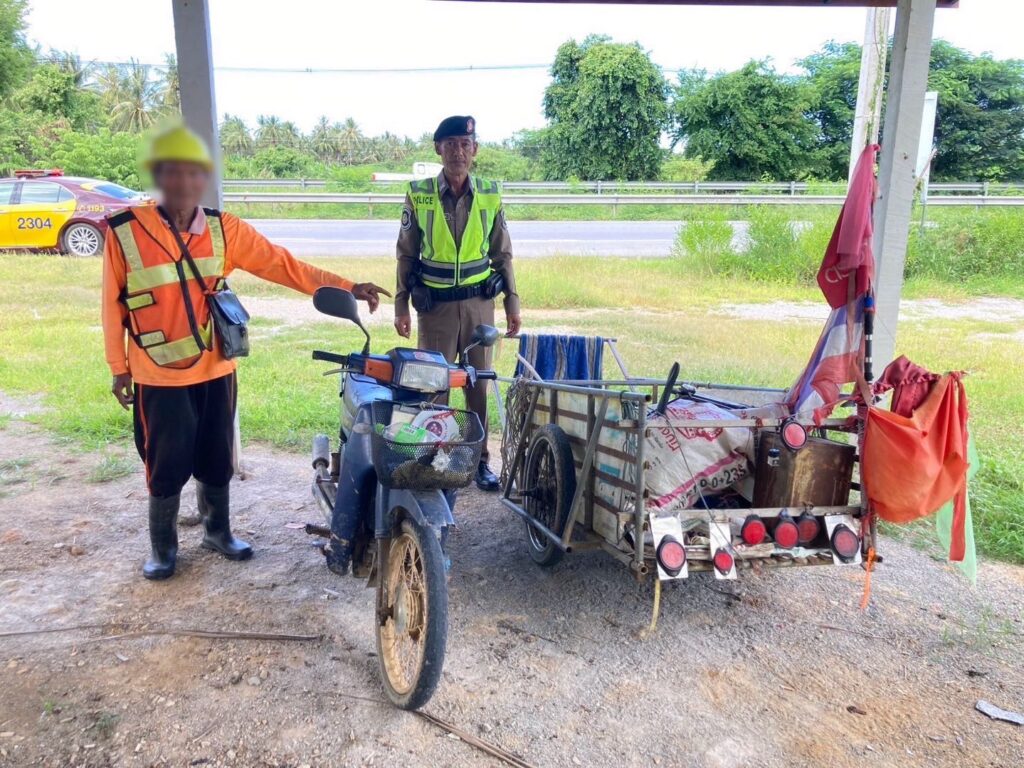 ตํารวจทางหลวง จับลุงเก็บของเก่า ใส่เสื้อกั๊กสะท้อนแสงเลียนแบบเจ้าหน้าที่ ลักแผงการ์ดเรลป้องกันอุบัติเหตุ แยกชิ้นส่วนขาย
