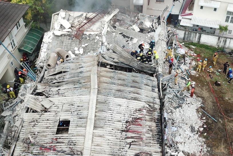 เจ้าของอาคารถล่มหลังไฟไหม้ส่งตัวแทนพบจนท.แล้ว