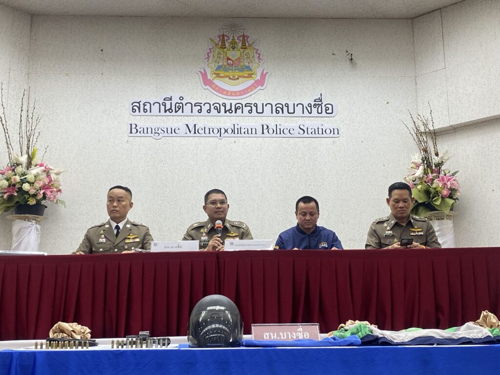 วันนี้ (7 ต.ค. 67) พล.ต.ต.นพศิลป์ พูลสวัสดิ์ รองผู้บัญชาการตำรวจนครบาล พร้อมเจ้าหน้าที่ที่เกี่ยวข้องร่วมแถลงผลการจับกุมตัว นายสันติ อดีตนักมวยผู้ต้องหาที่หลบหนีหมายจับ ว่า หลังจากผู้ต้องหาหลบหนีออกจากซอยอินทามระ 29 ได้ไปหาเพื่อนภรรยาย่านห้วยขวางเพื่อไปขอเงินจํานวน 2.7 หมื่นบาท ที่ภรรยาโอนฝากไว้ก่อนเกิดเหตุ จากนั้นได้เปลี่ยนชุดเป็นไรเดอร์และหลบหนีต่อไปยังย่านรามคําแหง โดยเดินลัดเลาะเพื่อหลีกเลี่ยงกล้องวงจรปิดไปถึงซอยรามคําแหง 65 และเดินต่อไปยังย่านลาดพร้าวก่อนจะเรียกแท็กซี่ไปยังคลอง 4 พื้นที่ จ.ปทุมธานี และไปเช่าห้องพักย่านนวนครและนั่งแท็กซี่ต่อไปยัง อ.วังน้อ จ.พระนครศรีอยุธยา โดยนอนพักอยู่ 2 คืน ก่อนจะเรียกแท็กซี่ต่อไปยัง จ.ยโสธร แต่มาถูกจับกุมได้คาด่านตรวจสกัดพื้นที่ สภ.โพธิ์กลาง จ.นครราชสีมา จากการตรวจค้นพบปืนลูกโม่ .38 พร้อมกระสุน 15 นัด และปืนออโตเมติก พร้อมกระสุน 17 นัด ก่อนคุมตัวมาสอบสวนที่ สน.บางซื่อ
