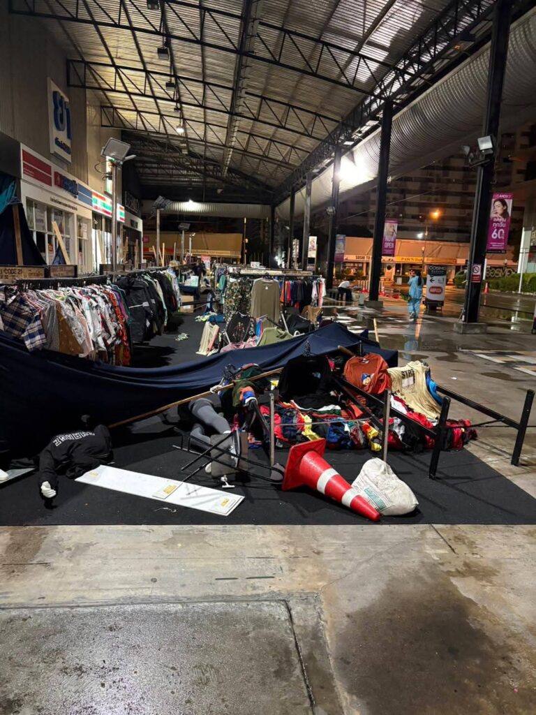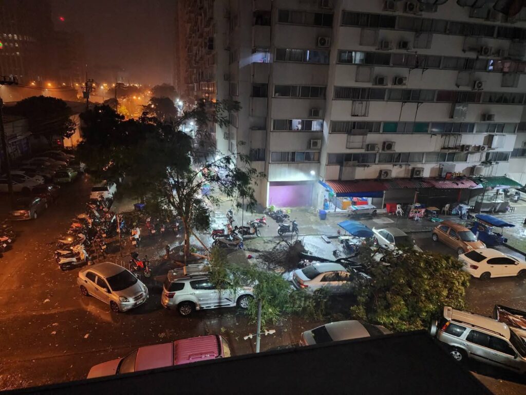 ขณะที่บริเวณคอนโดย่นเมืองทอง พบว่า มีต้นไม้หักโค่น ล้มทับรถยนต์ และรถจักรยานยนต์ที่จอดไว้ เสียหายหลายคัน และกีดขวางเส้นทางจราจรด้วย