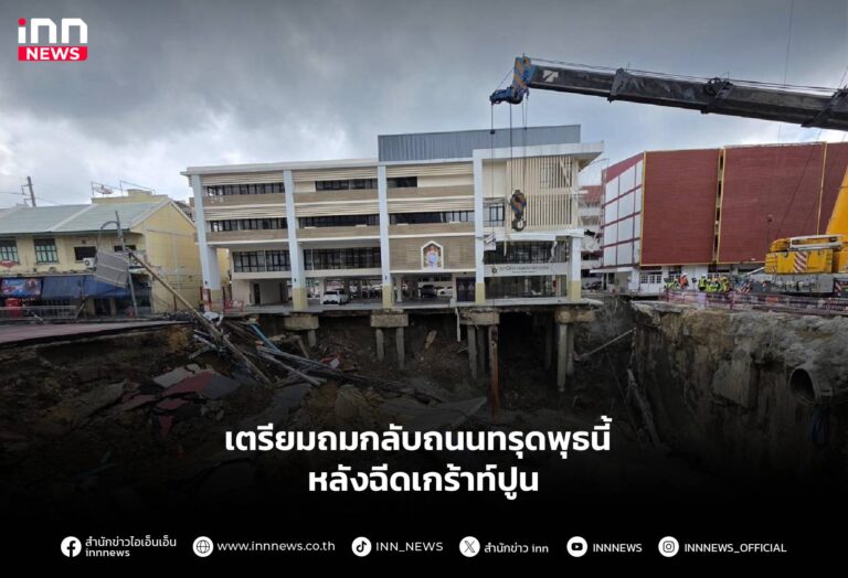 เตรียมถมกลับถนนทรุดพุธนี้ หลังฉีดเกร้าท์ปูน