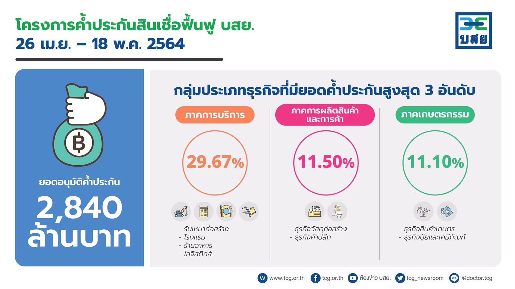 บสย. ชี้สัญญาณดี ค้ำประกัน สินเชื่อฟื้นฟู ตัวเร่งฟื้นเศรษฐกิจ 18 พ.ค. อนุมัติค้ำแล้ว 2,840 ล้านบาท 2,260 ฉบับ