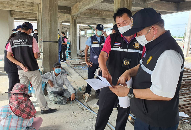พล.ต.ต.นันทชาติ กล่าวว่า ในวันนี้ รัฐมนตรีว่าการกระทรวงแรงงาน นายสุชาติ ชมกลิ่น ได้มอบหมายให้ตนและคณะลงพื้นที่สมุทรสาครร่วมกับชุดเฉพาะกิจฝ่ายความมั่นคงและหน่วยงานที่เกี่ยวข้อง ตรวจสอบการทำงานของคนต่างด้าวในสถานประกอบการ พบปะกับลูกจ้าง นายจ้าง และภาคส่วนที่เกี่ยวข้องในการขับเคลื่อนนโยบายของรัฐบาลเพื่อคุมเข้มเฝ้าระวังป้องกันและปราบปรามการลักลอบเข้าเมืองผิดกฎหมายของแรงงานต่างด้าว ตลอดจนการควบคุมสถานการณ์ตามมาตรการป้องกันการแพร่ระบาดของโรคโควิด-19 อีกด้วย โดยมี จนท.กทค. ร่วมกับ สจจ.สมุทรสาคร และ กก.สส.ตม.3 เข้าร่วมดำเนินการในสถานประกอบการจำนวน 4 แห่ง ได้แก่ 1) โครงการก่อสร้างอาคารพาณิชย์ ริมถนนธนบุรี – ปากท่อ ตั้งอยู่ที่ ตำบลกาหลง อำเภอเมือง จังหวัดสมุทรสาครประเภทกิจการก่อสร้าง ไม่มีการจ้างแรงงานไทย มีการจ้างแรงงานต่างด้าว จำนวน 18 คน เป็นชาย 10 คน หญิง 8 คน สัญชาติลาว 15 คน เป็นชาย 8 คน หญิง 7 คน สัญชาติกัมพูชา 3 คน เป็นชาย 2 คน หญิง 1 คนแรงงานต่างด้าวมีเอกสารการอนุญาตทำงานและเอกสารการอนุญาตให้อยู่ในราชอาณาจักรถูกต้อง 16 คน