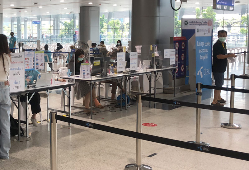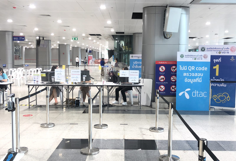 บรรยากาศที่ศูนย์ฉีดวัคซีนกลางบางซื่อ ในวันนี้มีประชาชนที่ลงทะเบียนนัดหมายล่วงหน้าได้เดินทางมาเข้ารับวัคซีนค่อนข้างบางตา เนื่องจากเป็นวันทำงานปกติ ทำให้บรรยากาศภายในสถานีกลางบางซื่อวันนี้ ไม่คึกคักเหมือนช่วงวันหยุดสุดสัปดาห์ โดยทางเจ้าหน้าที่ได้มีการคุมเข้มการเว้นระยะห่างทางสังคมเพื่อป้องกันการแพร่ระบาดของ โควิด-19 อย่างเข้มงวด พร้อมจัดระบบในการรับลงทะเบียนฉีดวัคซีนตรวจวัดอุณหภูมิร่างกายและฉีดวัคซีนเพื่อให้เป็นไปด้วยความเรียบร้อยและรวดเร็ว