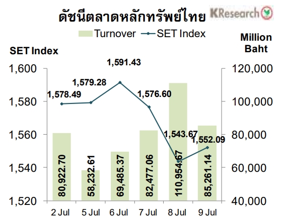ส่วนความเคลื่อนไหวของตลาดหุ้นไทย บริษัทหลักทรัพย์กสิกรไทย จำกัด มองว่า ดัชนีหุ้นไทยสัปดาห์หน้า มีแนวรับที่ 1,530 และ 1,520 จุด แนวต้านอยู่ที่ 1,560 และ 1,570 จุด ตามลำดับ โดยปัจจัยสำคัญที่ต้องติดตาม ได้แก่ สถานการณ์โควิด-19 ตลอดจนความคืบหน้าในการกระจายวัคซีนโควิด-19 ในประเทศและต่างประเทศ ประเด็นการเมืองภายในประเทศ ตลอดจนการทยอยประกาศผลประกอบการไตรมาส 2/64 ของบริษัทจดทะเบียน
