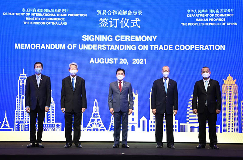 ในวันนี้นายจุรินทร์ ลักษณวิศิษฏ์ รองนายกรัฐมนตรี และรัฐมนตรีว่าการกระทรวงพาณิชย์ ได้เป็นสักขีพยานในพิธีลงนามบันทึกความ เข้าใจด้านความร่วมมือทางการค้า ไทย-ไห่หนาน ระหว่างอธิบดีกรมส่งเสริมการค้าระหว่างประเทศ และ อธิบดีกรมพาณิชย์ไห่หนาน โดยระบุว่า ประเทศจีน ถือเป็นคู่ค้าอันดับ 1 ของประเทศไทยมาโดยตลอดและในปีที่ผ่านมาการค้าระหว่างไทยจีน มีมูลค่ากว่า 2.5 ล้านล้านบาท คิดเป็นสัดส่วนร้อยละ 18.6 ของการค้าไทยการค้าโลก ในขณะที่การค้าร่วมกับมณฑลไห่หนานในปีที่ผ่านมามีมูลค่ากว่า 9,200 ล้านบาท